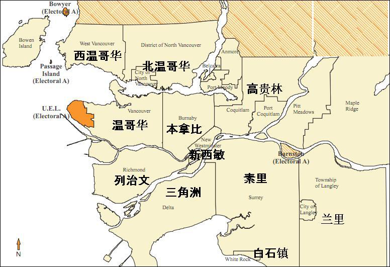Vancouver”,是另一个地理位置上在温哥华市西北方的独立市政区。