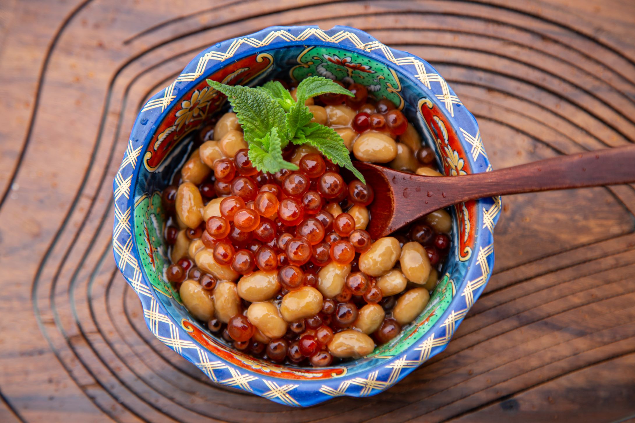 来自奇利瓦克河Chilliwack River的帝王鲑鱼子遇上了北海道产的大粒纳豆