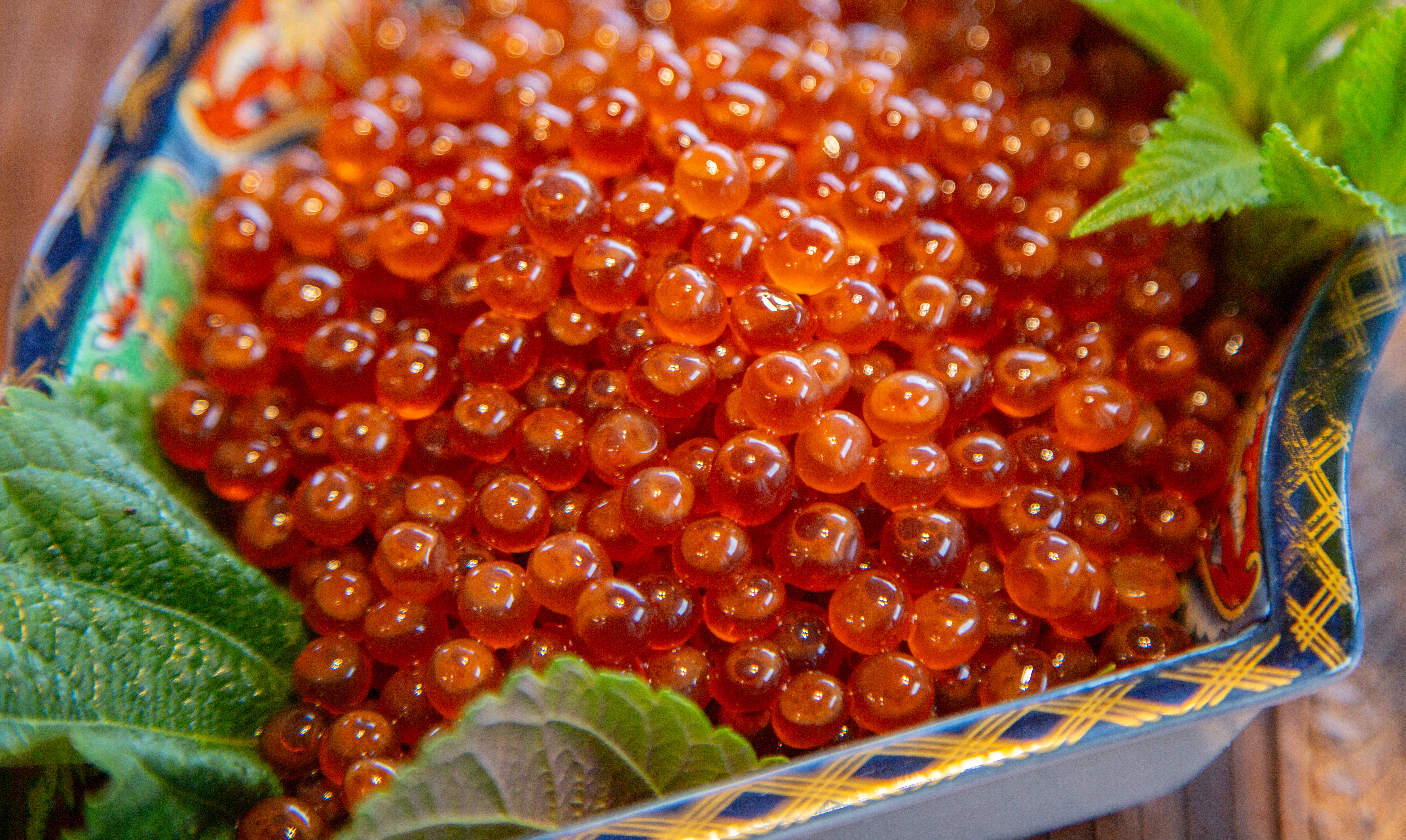 在日本料理里,三文鱼子酱(いくら / ikura)是高档食材之一。真正的顶级鱼子是入口即爆、质地细腻、咸鲜平衡、没有异味。