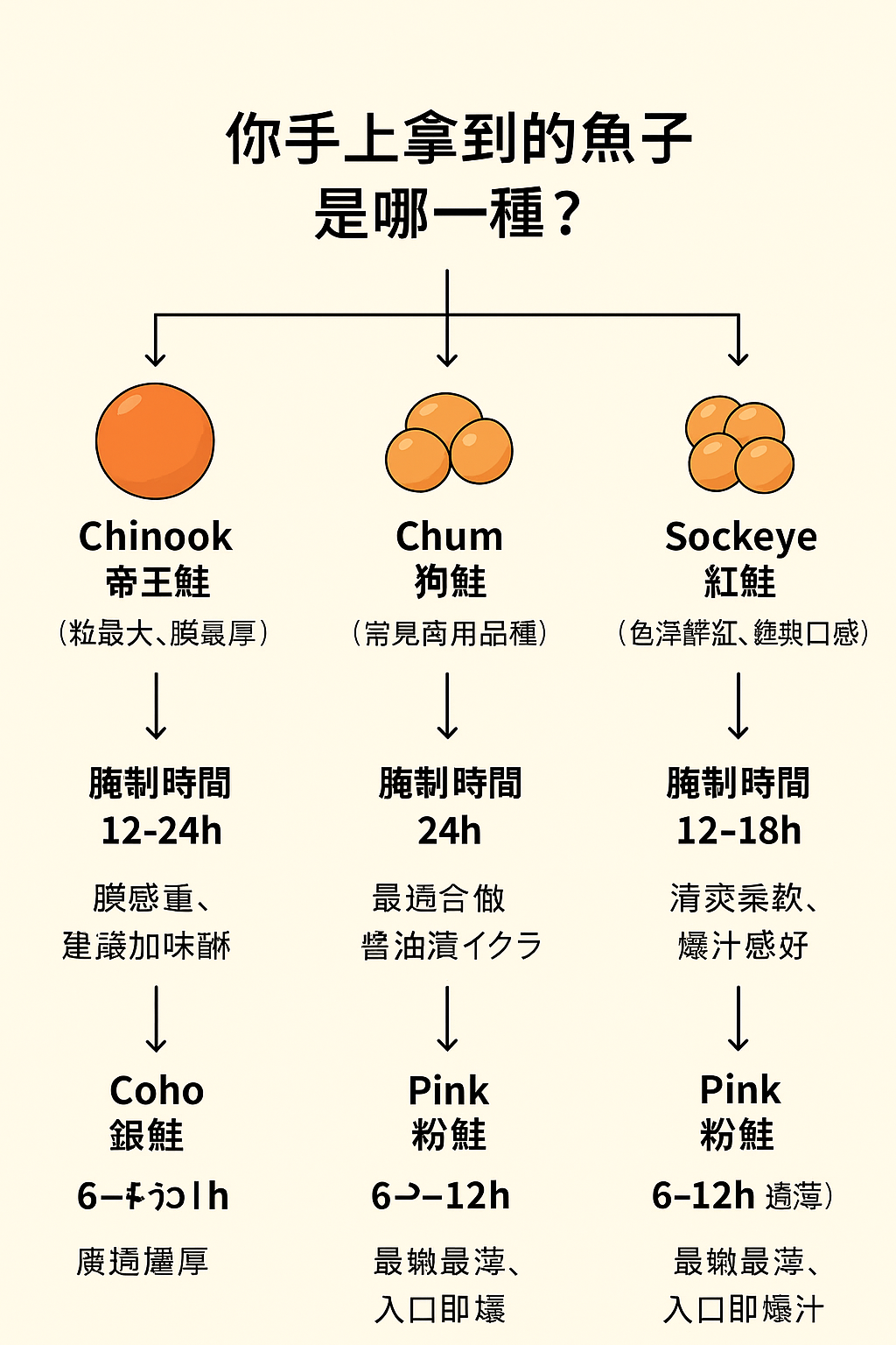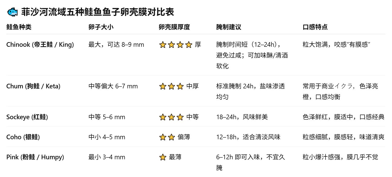 | 帝王鲑 | キングサーモン | King/Chinook | 粒大味浓、脂香重 | ⭐⭐⭐⭐ |
