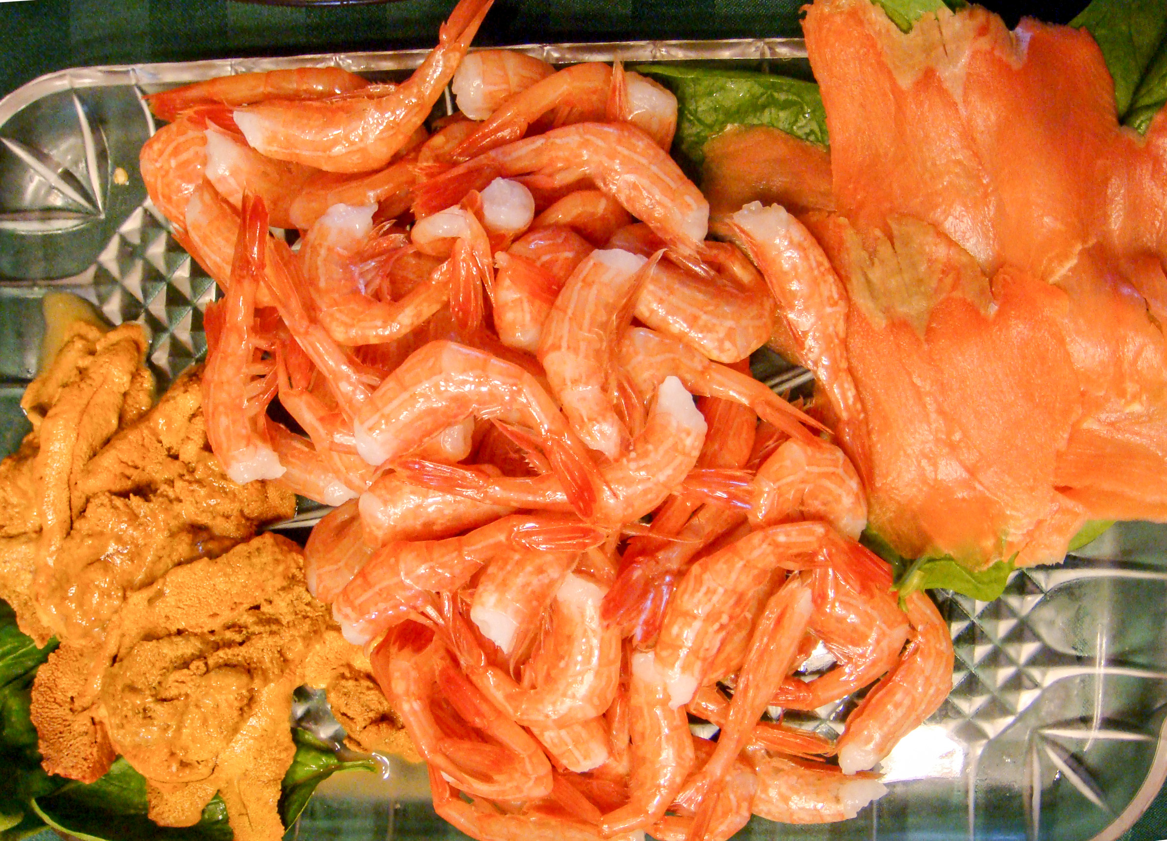 海鲜拼盘,海胆、甜虾、烟熏三文鱼,2010-05-08