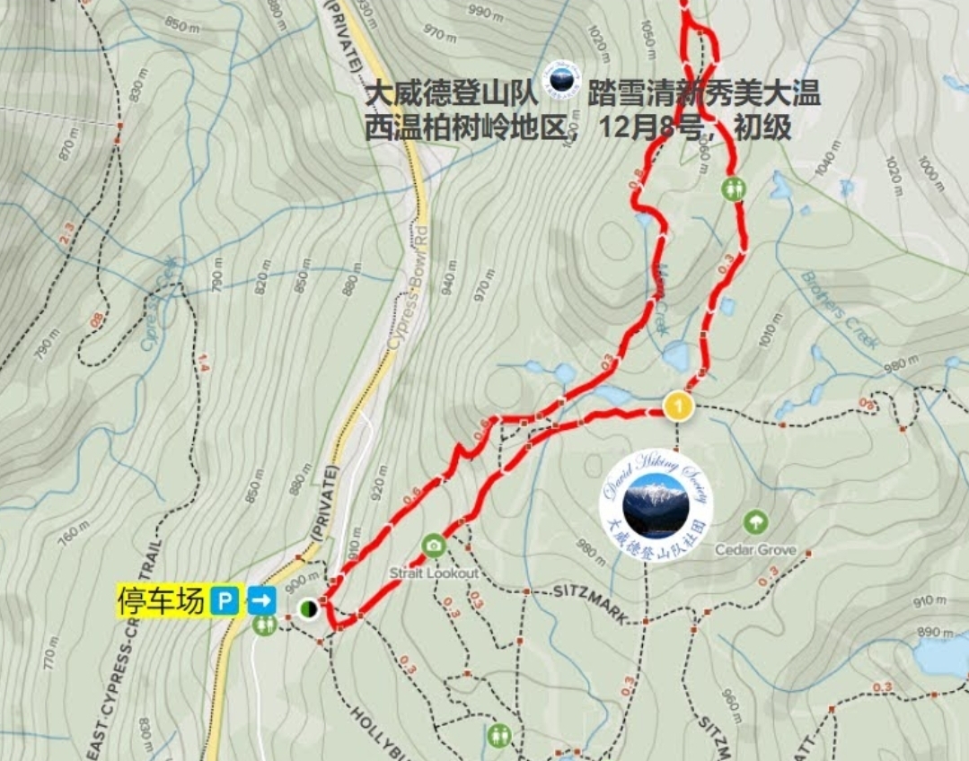 集合地点: ,西温柏树岭北欧地区停车场,参考地址,5000 Cypress Bowl Rd, West