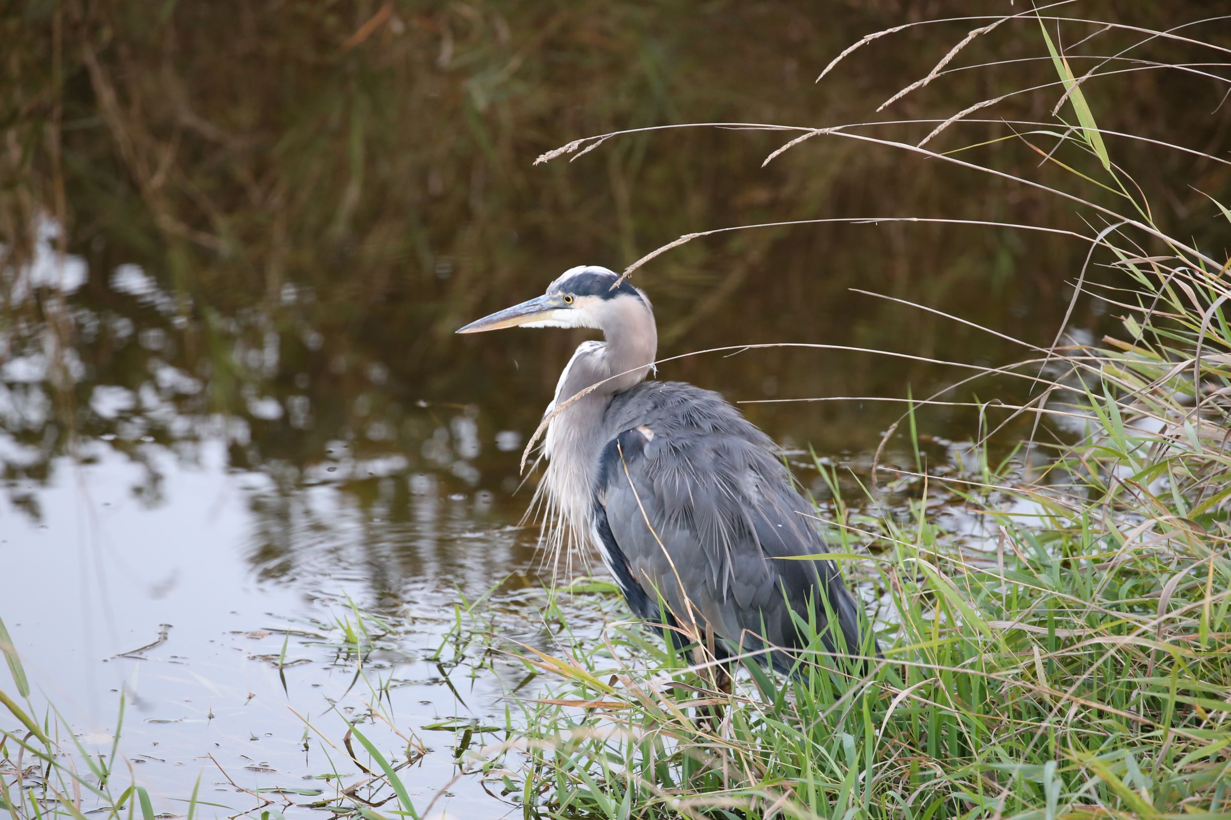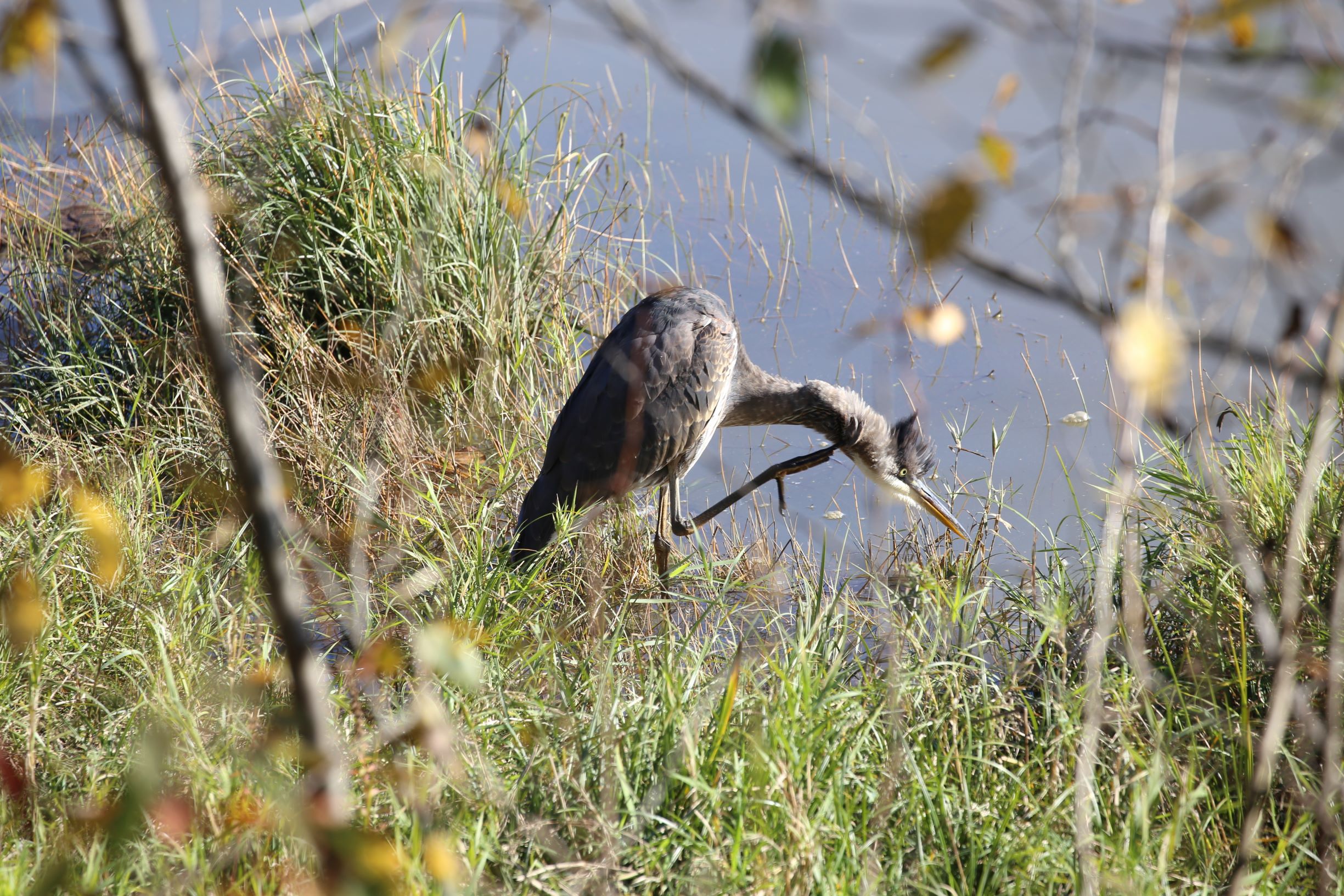 大蓝鹭(Great Blue Heron),这是在农田和路边沟渠中常见的一种。