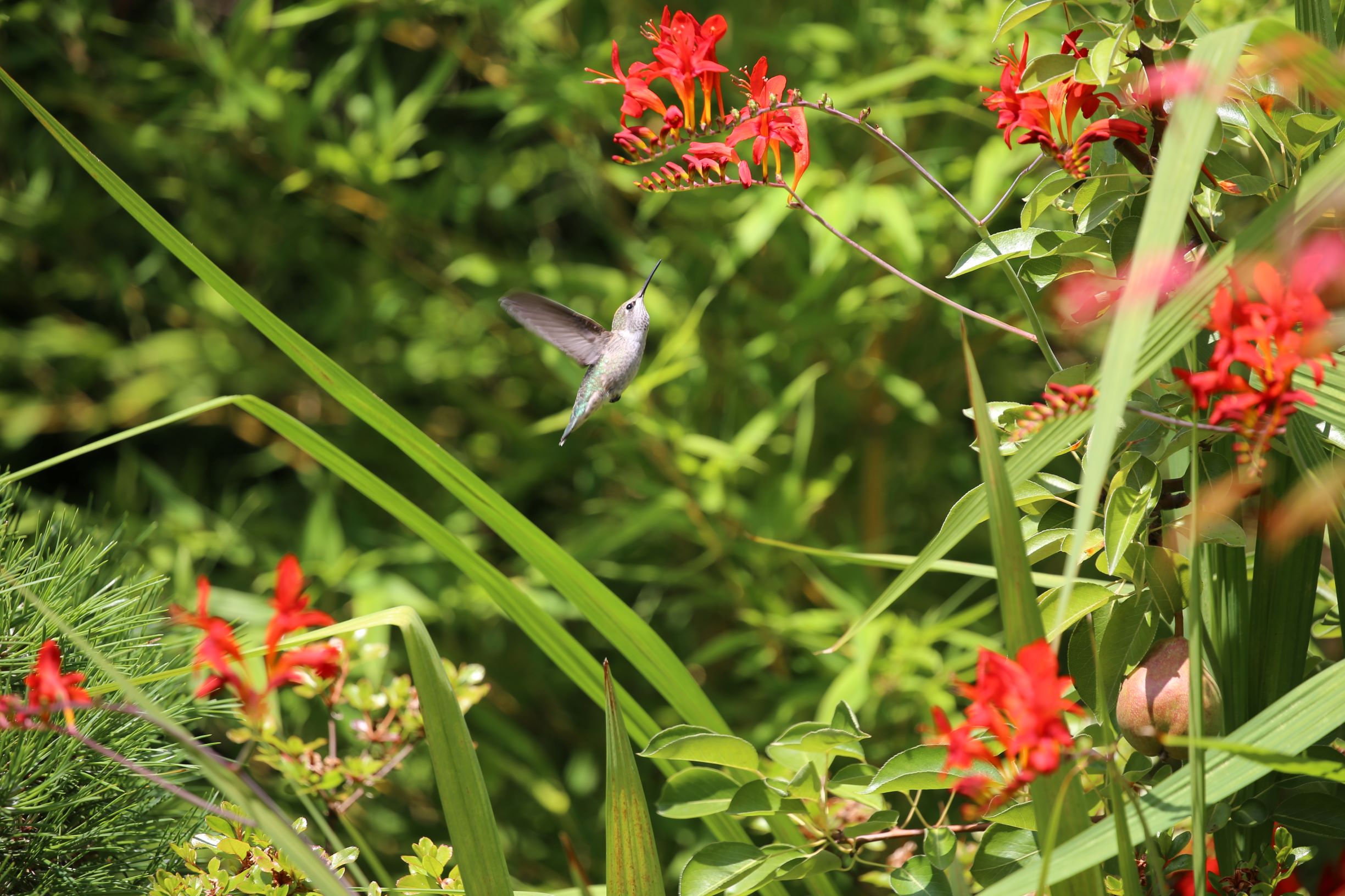 卡里奥佩蜂鸟和火星花(Crocosmia x crocosmiiflora)