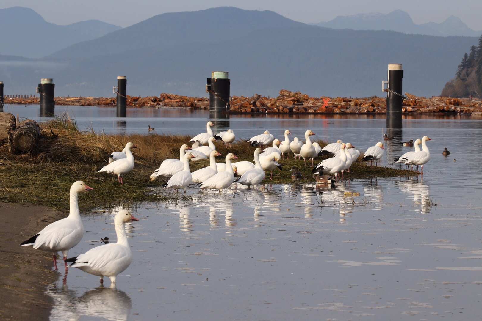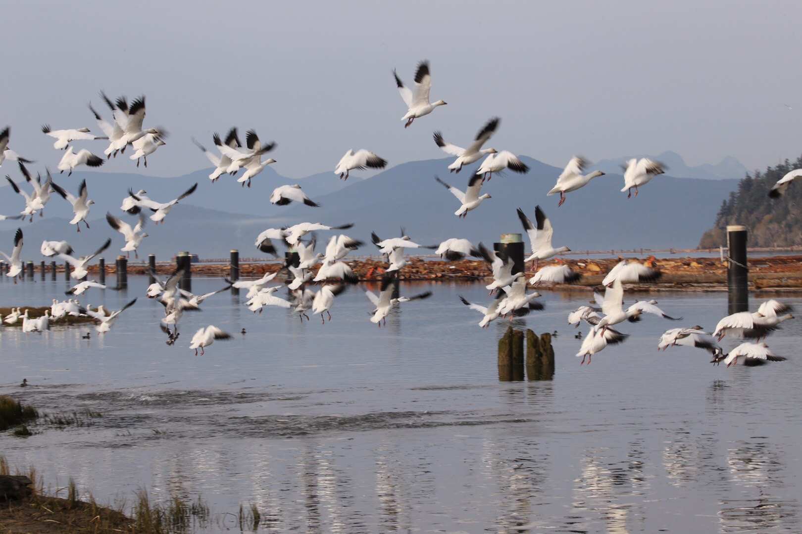 拍摄于列治文爱奥那海滩地区公园(Iona Beach Regional Park), 这些雪雁长途跋涉从阿拉斯加和西伯利亚以北的极地飞行几千公里来到温哥华过冬。