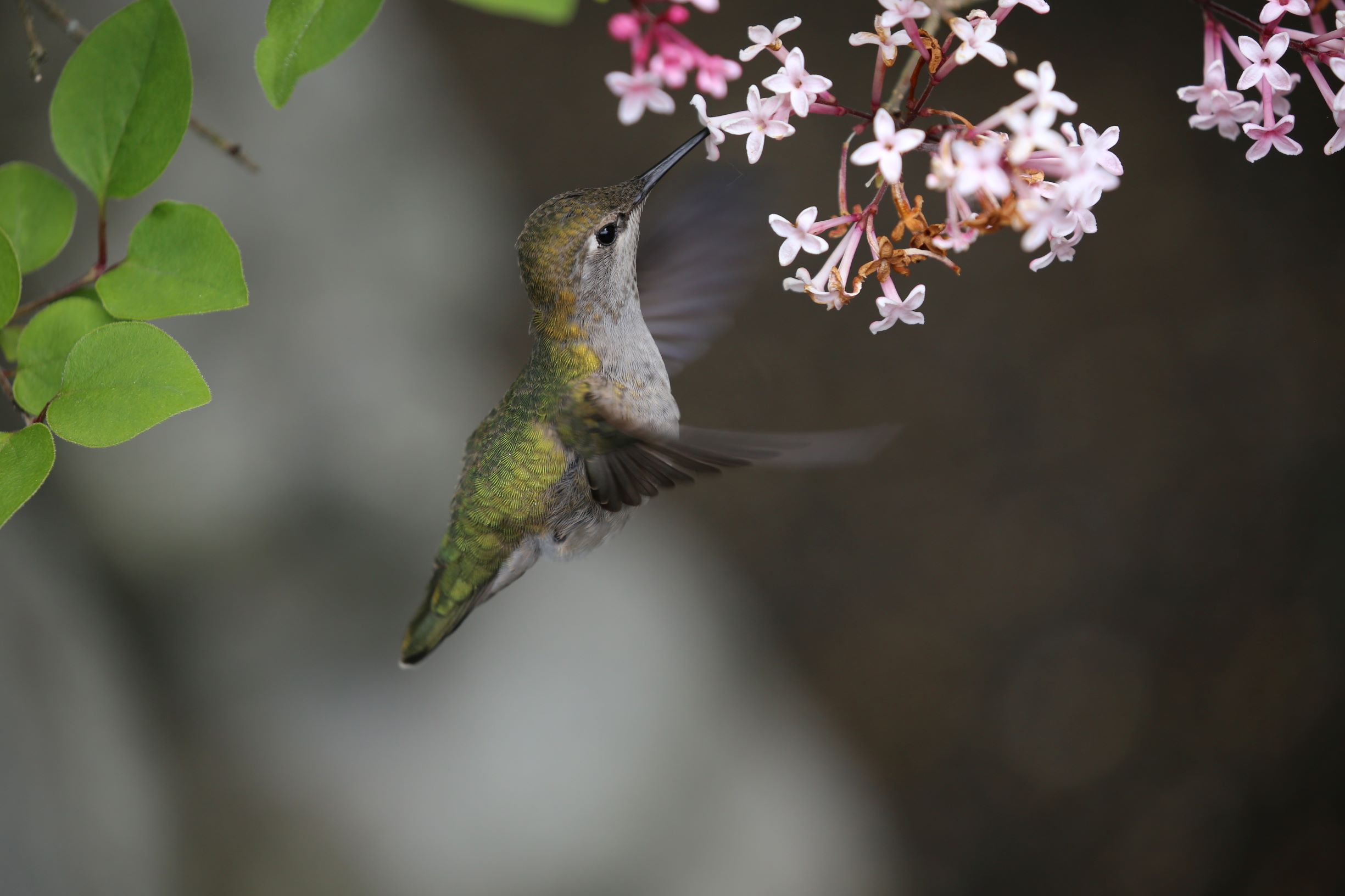 卡里奥佩蜂鸟正在吸食丁香花蜜。